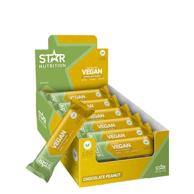 Vegan Protein Bar er en vegansk proteinbar fra Star Nutrition. Den kombinerer en fantastisk smag med næringsværdier, som gør den nyttig som erstatning til almindeligt slik, som et proteintilskud efter træning eller som et velsmagende mellemmåltid i løbet af dagen.