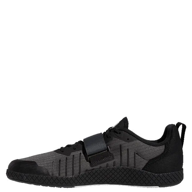 Inspireret af fitnesskulturen. Ideelle til dødløft. Disse Total-vægtløftningssko uden løftet hæl hjælper med at skabe den perfekte low-to-ground position, som mange dødløftere foretrækker. Den brede tåboks hjælper dig også med at finde en stabil position. Den holdbare tekstiloverdel har fitness-inspirerede designdetaljer og en rem samt snørebånd, der låser fødderne fast.