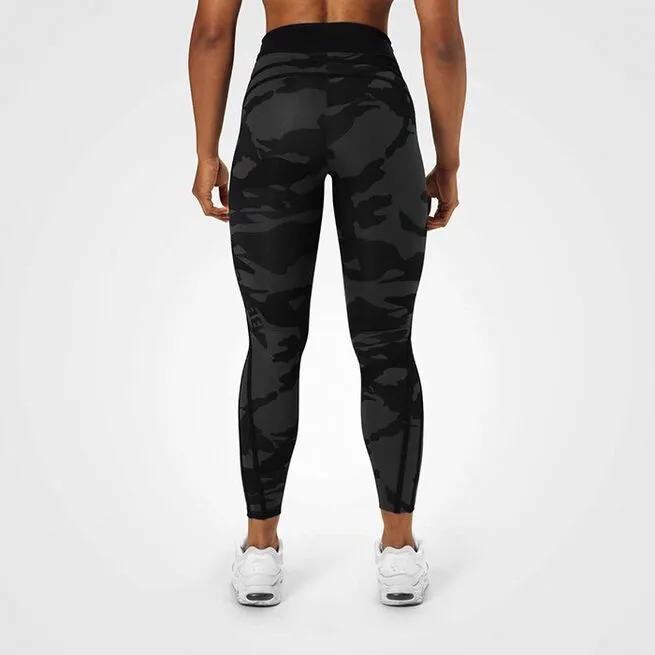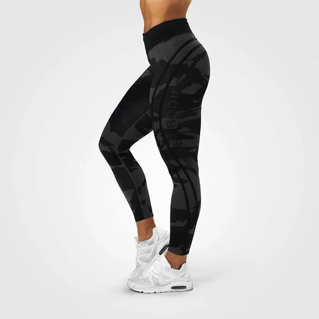 Better Bodies Camo High Tights kommer med kontraststriber, der giver et flot og atletisk look! De er fremstillet i et komprimerende stof, som ligeledes er fugttransporterende. Better Bodies Camo High Tights har en høj talje og en skjult inderlomme i linningen.