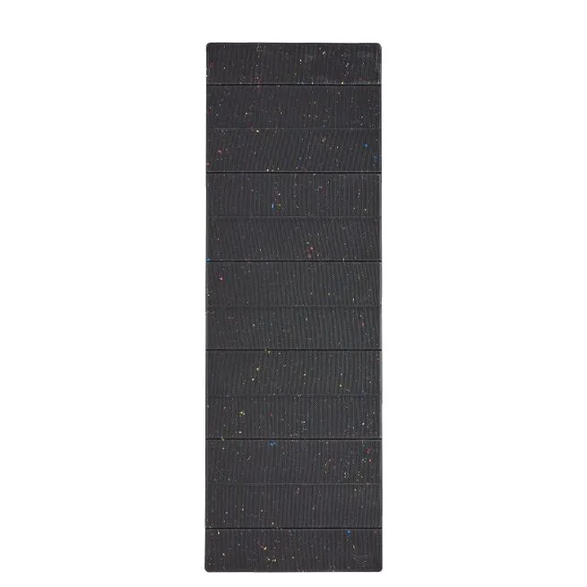 Materiale: Fremstillet af en blanding af TPE og 30% genanvendt TPE. Genbrugsmaterialet tages direkte fra produktionsprocessen, hvilket giver minimalt med restmateriale, som ellers ville blive smidt ud. Denne unikke produktionsteknologi gør måtten til et mere miljøvenligt alternativ
