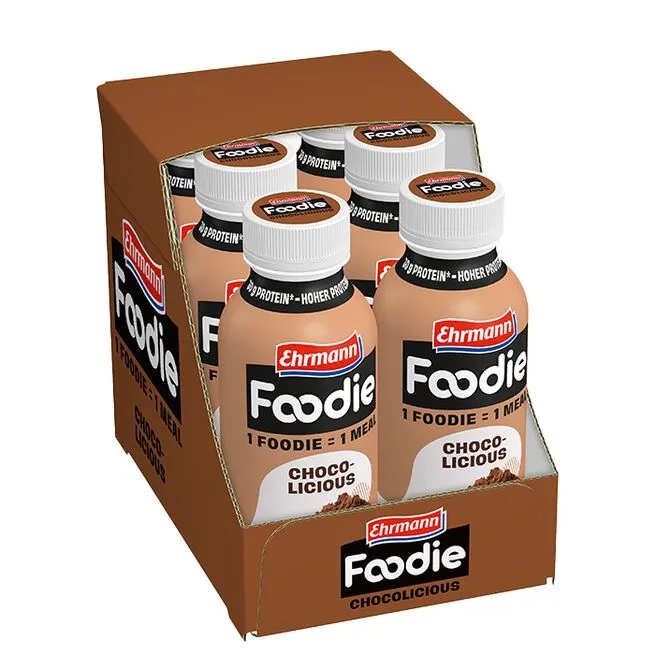 Ett enkelt sätt att göra en förändring i kosten är med Foodie Måltidsersättning 400 ml från Ehrmann. Denna måltidsersättare ger ca 420 kcal per servering och lämpar sig bäst till att ersätta en av dagens största och mest kaloririka måltider. Med Foodie Måltidsersättning får du en väl balanserad mäng vitaminer, mineraler, kostfiber, protein och fett. Drycken är även fri från gluten och laktos.