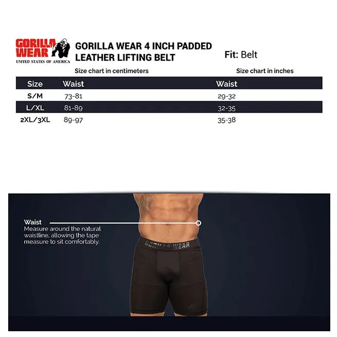 Ekstra støtte til torso og ryg kan fås med 4 Inch Padded Leather Belt fra Gorilla Wear. Et bælte med ekstra polstring for optimal komfort og nøje udformet design for at give ekstra støtte.