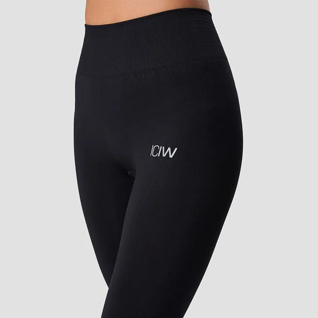 - ICIW-logo på venstre hofte og strikket diskret logo på højre ben
