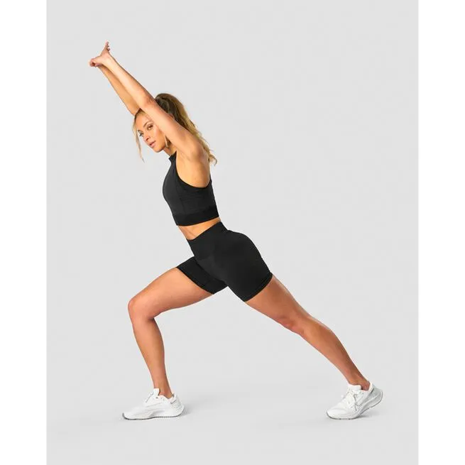 Sømløse shorts med logo-mønster. Signature Collection er en sømløs træningskollektion med et unikt tone-i-tone ICIW-mønster. Materialet er lidt tykkere og mere komprimeret end vores andre sømløse beklædningsgenstande, hvilket giver en perfekt pasform, der bliver siddende på plads. Disse shorts har ICIW-logomønster over det hele, ribkant i taljen og høj hals.