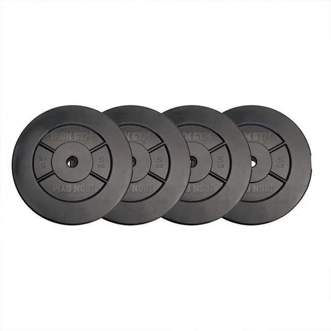 Iron Gym 20kg Plate Set er tillægsvægte som er kompatibel med Iron Gyms Dumbell Set, Barbell Set og Curl Bar Set. Vægtene er plastbeklædte for at gå hånd i hånd med flere forskellige gulvtyper.