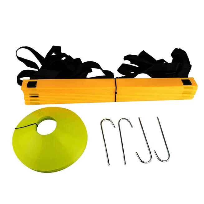 Sport Nation Step Ladder er det ultimative træningsredskab, hvis du vil forbedre din hastighed, smidighed og fodarbejde! Perfekt til alle sportsgrene såsom fodbold, håndbold, ishockey, tennis med mere. Stigen er hele 6 meter lang og har 4 jordforankringsstænger til at holde den på plads. Der indgår 10 gule/grønne kegler og en opbevaringstaske. Dette træningsredskab er velegnet til alle uanset niveau!