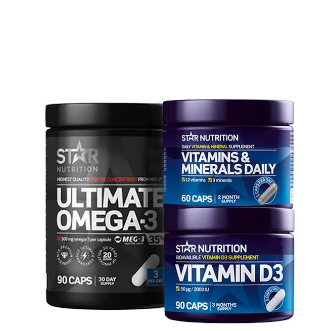 - 1 x Ultimate Omega-3, 90 kapsler – Har en veldokumenteret effekt på hjerte- og karsystemet samt hjernen og nervesystemet.