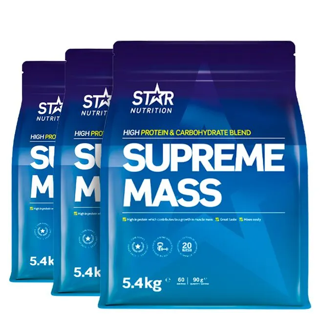 Supreme Mass fra Star Nutrition er et proteinrigt kulhydratmix til restitution, som giver dig alt hvad du behøver for at øge din vægt og muskelmasse.