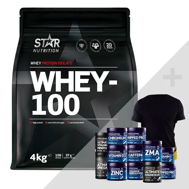 - 1 x Whey-100, 4 kg – Et komplet proteintilskud med god smag og opløselighed!