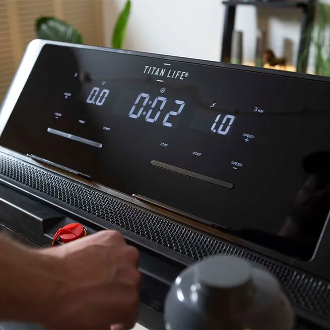 Dette løbebånd kan du opnå en hastighed på op til 20km/t. og 15 hældningsniveauer. Alt sammen for at maksimere din træning efter dine personlige behov og ønsker til netop din træning. Displayet er endnu mere højteknologisk end tidligere modeller fra Titan, og du får bl.a. vist hastighed, tid, distance, puls, kalorier, hældning og fedtprocent. Du får desuden mulighed for at justere hastighed og hældning via kontrolpanelerne på siderne af løbebåndet. Det gør det nemt at tilpasse sværhedsgraden under træningen. Løbebåndet har god stødabsorbering, som er skånsomt for dig og dine led, og i sidste ende bidrager til en endnu bedre løbeoplevelse.