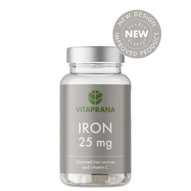 Iron 25 mg fra Vitaprana anvender to forskellige varianter af jern. Disse er jernbisglycinat og jernglukonat. Begge har en høj biotilgængelighed og kan let optages af kroppen, men for at forbedre optagelsen yderligere har Vitaprana tilsat C-vitamin.