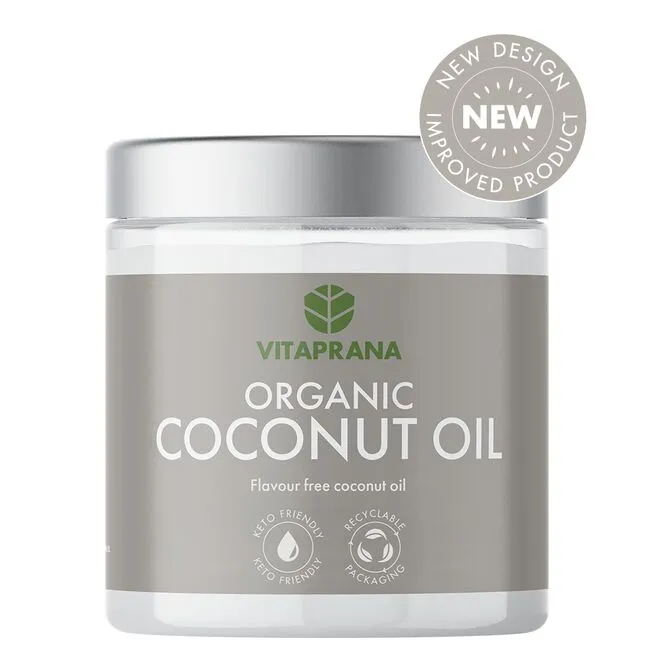 Flavor Free Organic Coconut Oil fra Vitaprana er en økologisk kokosolie uden lugt. En olie helt uden smag og lugt!
